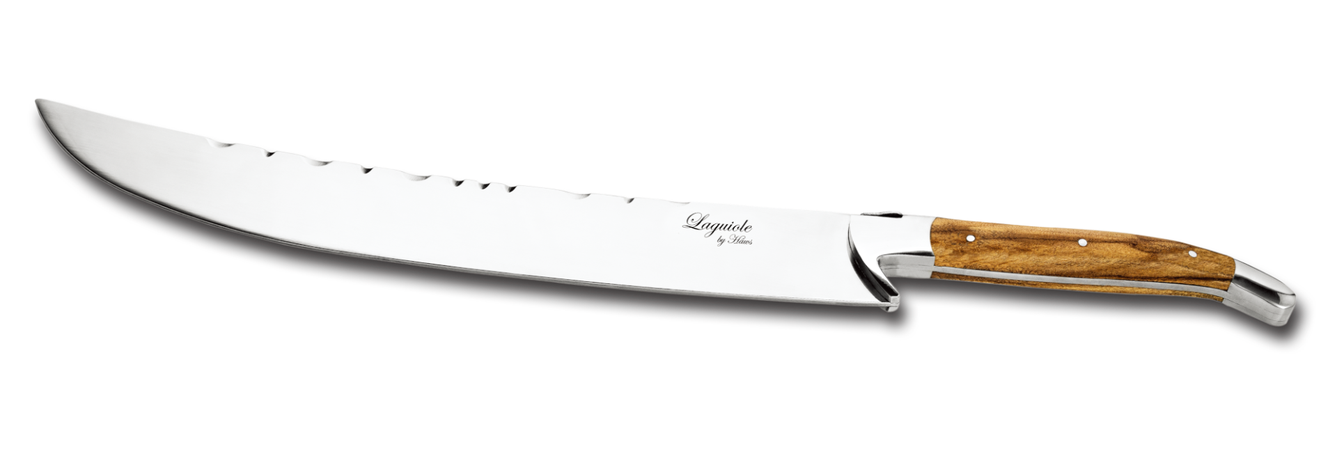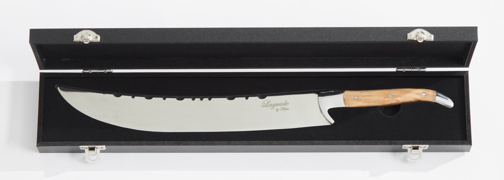 Flot Laguiole By Hâws Champagnesabel med Oliventræ skaft. Sablen er hele 42 cm lang. Sablen har rustfri blad, og leveres i praktisk og flot sort gave æske.