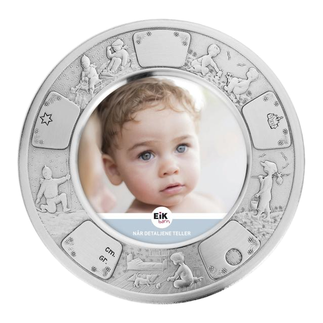 Rund fotoramme til dreng ø18cm, Tin, til gravering