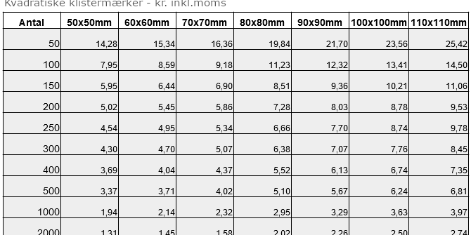 Firkantede Klistermærker, minimum 50 styk