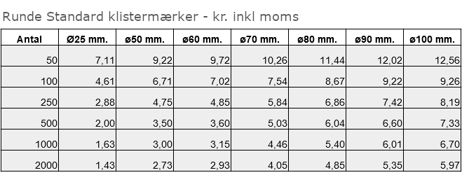 Runde Klistermærker, minimum 50 styk