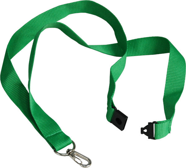 Nøglesnor udført i god kvalitet polyester, indfarvet grøn (Pantone 347). Syet med Japan Hook karabin samt sikkerheds spænde i nakken.