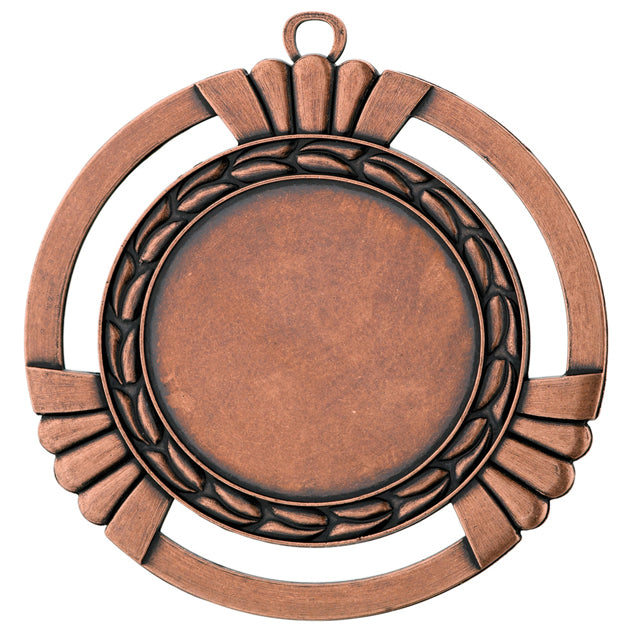 Kæmpe stor kvalitets medalje i metal på hele 90 mm. i diameter. Medaljen har et romersk antikt finish. Medaljen leveres i guld, sølv og bronze (antikt). Du har mulighed for at tilvælge fra et bredt udvalg af medaljebånd, samt standard emblemer og sportsmotiver (ø50 mm).