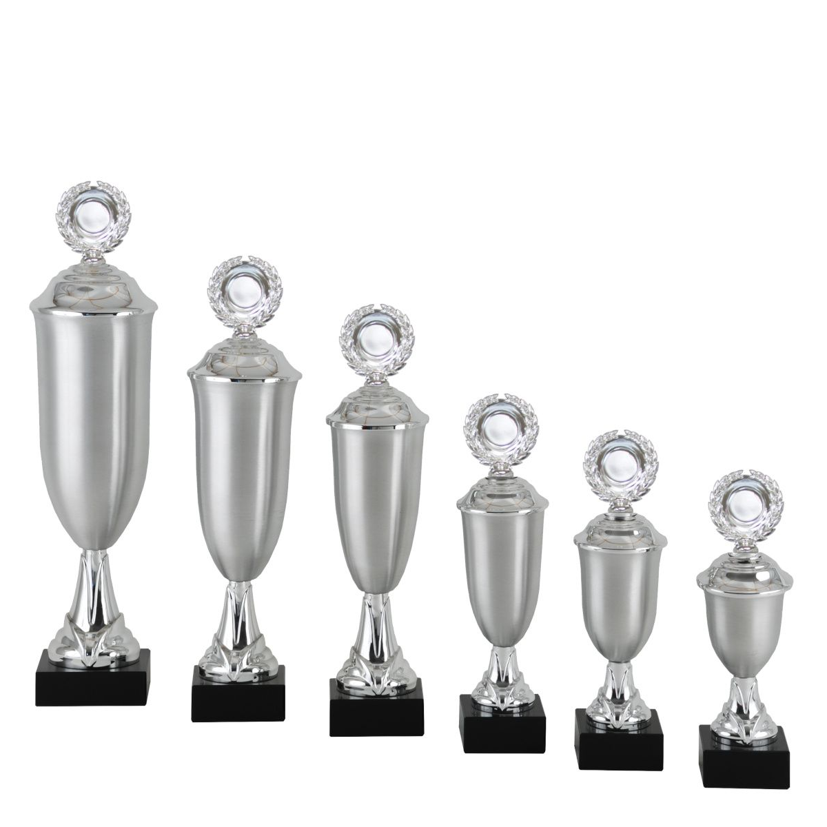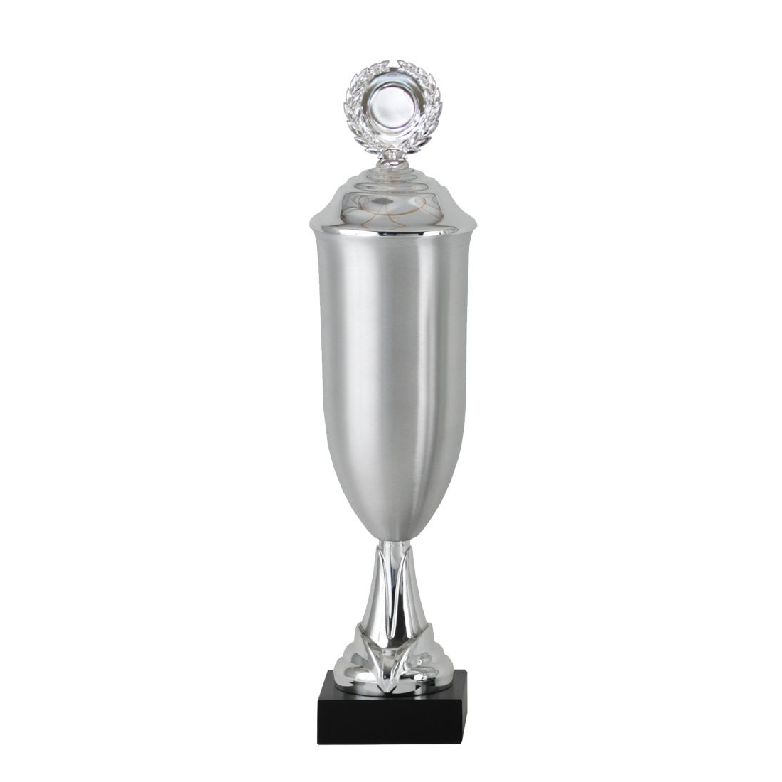 Flot og elegant aluminium pokalserie. Velegnet til vandrepokal da koppen er høj, med stort graveringsareal. Pokalen er udstyret med sølv chrom låg, som er monteret med en dekorativ emblemholder. Koppen er med alu børstet finish, og placeret på en iøjnefaldende trompet. (Midterstykke)